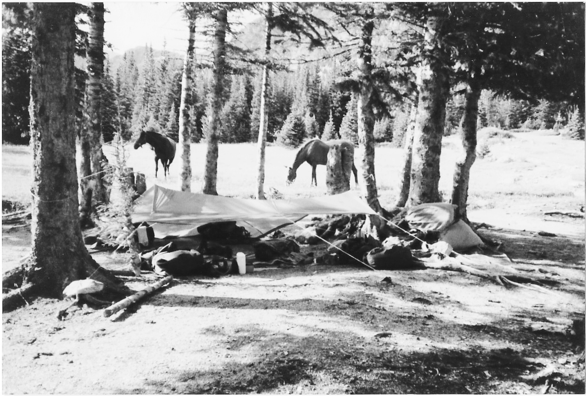 While grooming the horses with clumps of twisted grass, I picked their feet and checked to see that their shoes were on tight before tacking them up for the day’s ride. I always carry a pair of shoe pullers, a few nails, a small shoeing hammer and an old worn extra shoe on these long trips. A worn shoe balances their feet better than a thicker new one.
